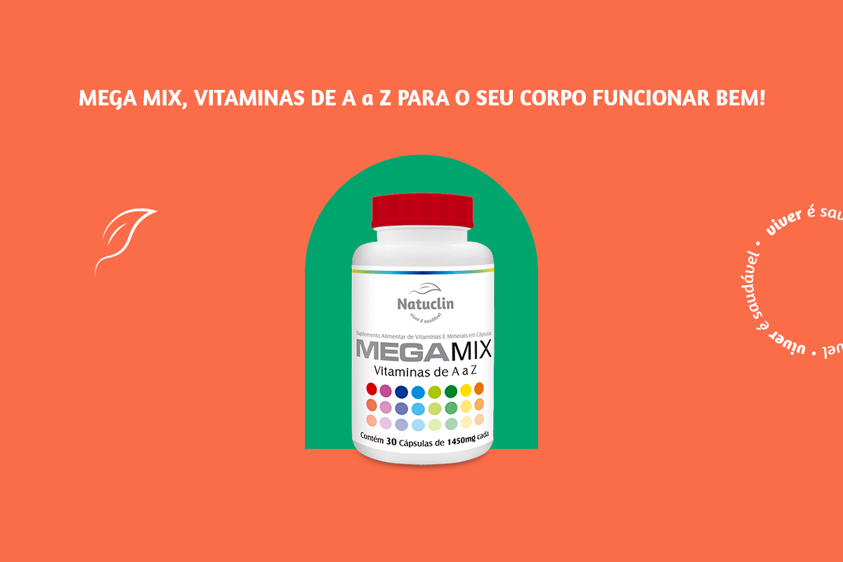 O Mega Mix é um suplemento vitamínico em cápsulas que contêm vitaminas e minerais de A a Z e cada uma dessas vitaminas têm um benefício especial para o seu organismo. Conheça os principais benefícios das vitaminas e minerais do Mega Mix: