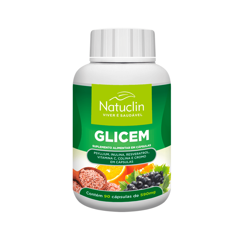O Glicem da Natuclin é um suplemento alimentar em cápsulas, uma opção de fibras que oferece benefícios à saúde.